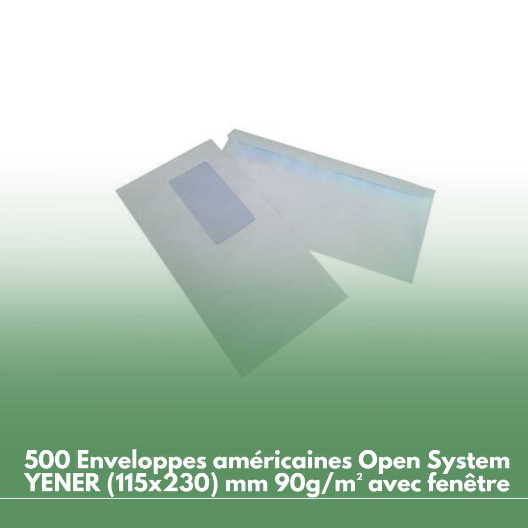 500 Enveloppes américaines Open System (115×230) mm 90g/m² avec fenêtre